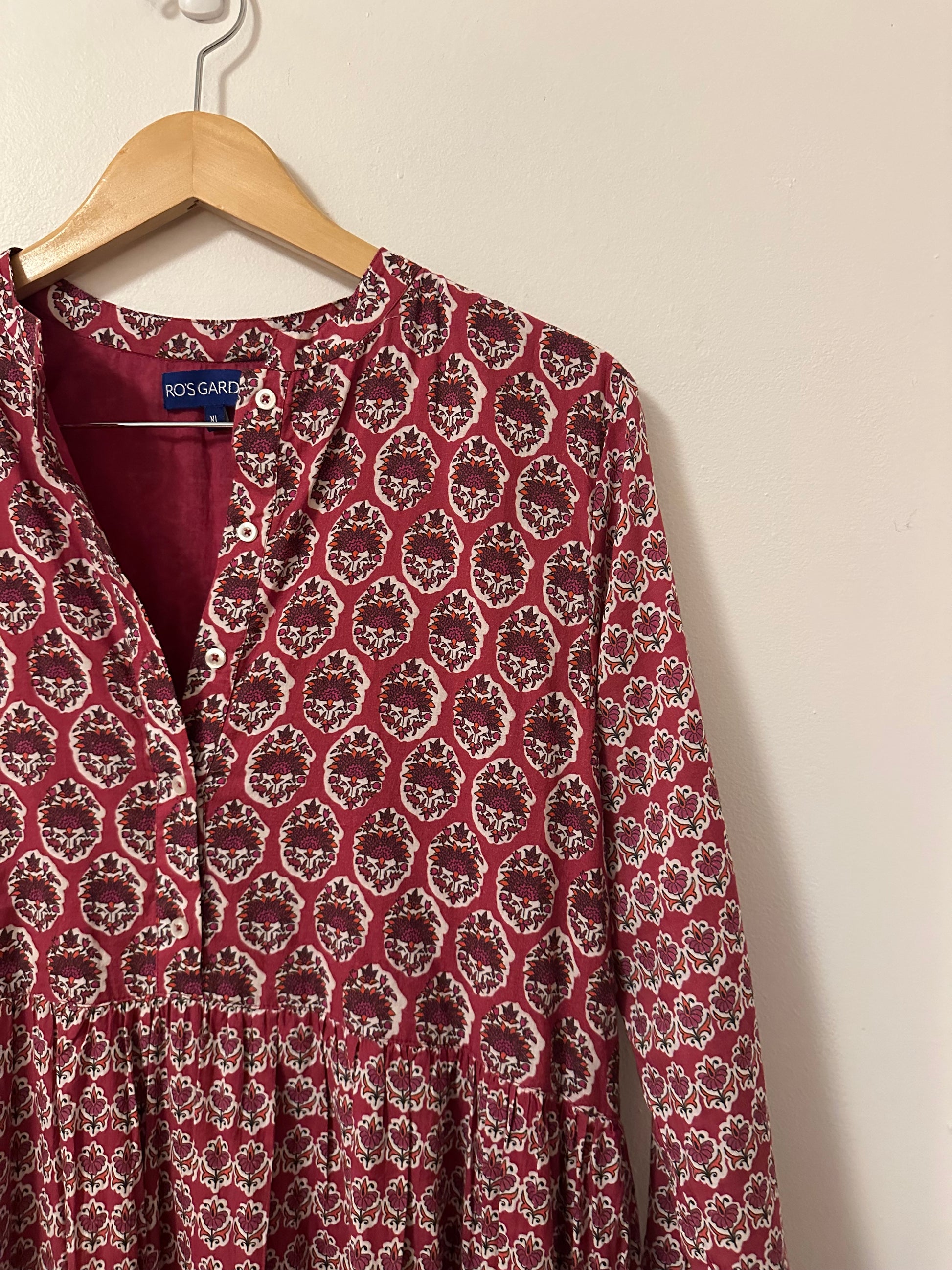 Ro’s Garden Red Long Sleeve Boho Cotton Maxi Dress | Size XL