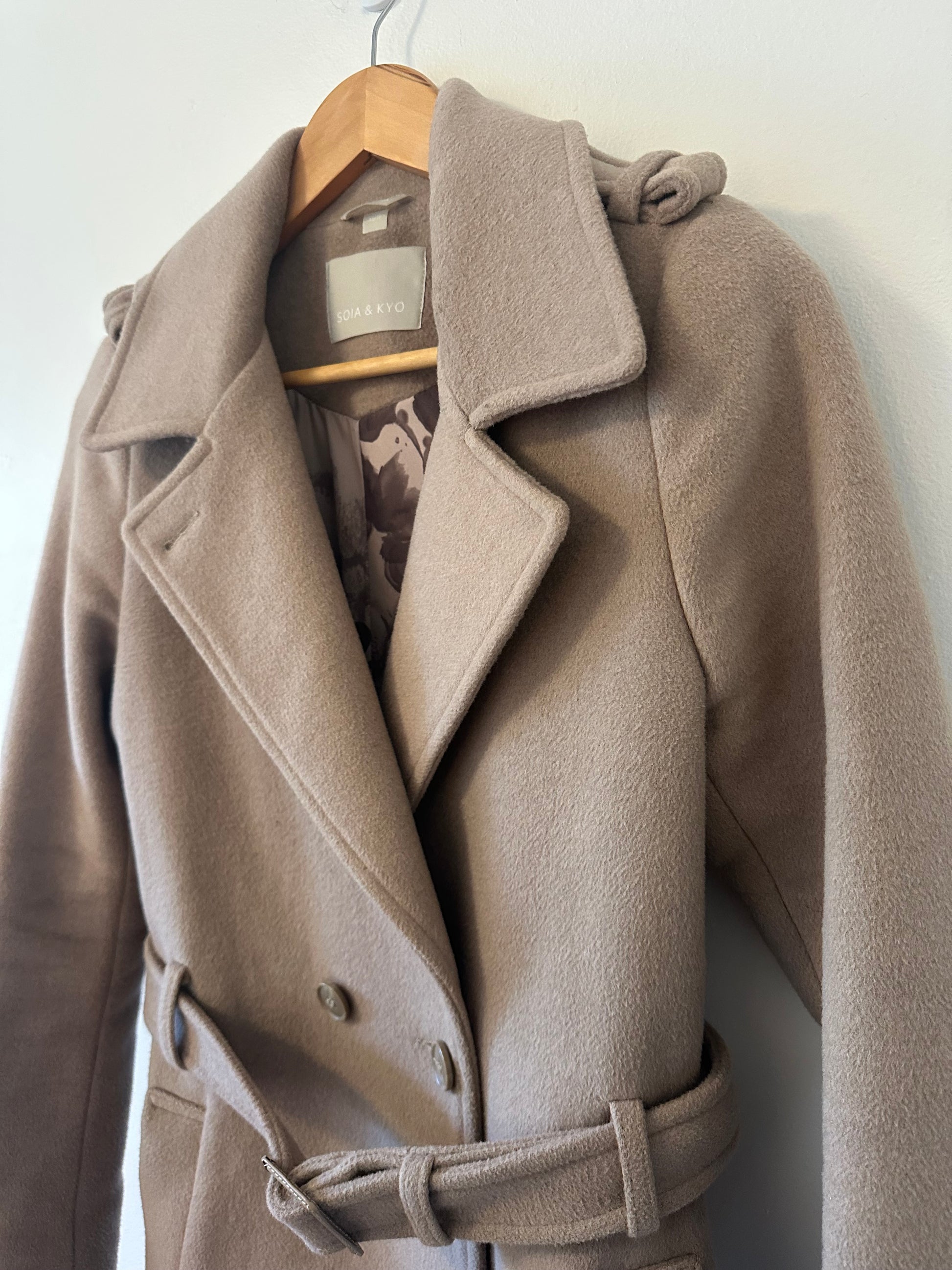 Soia & Kyo Classic Beige Wool Blend Trench Coat | Size XS