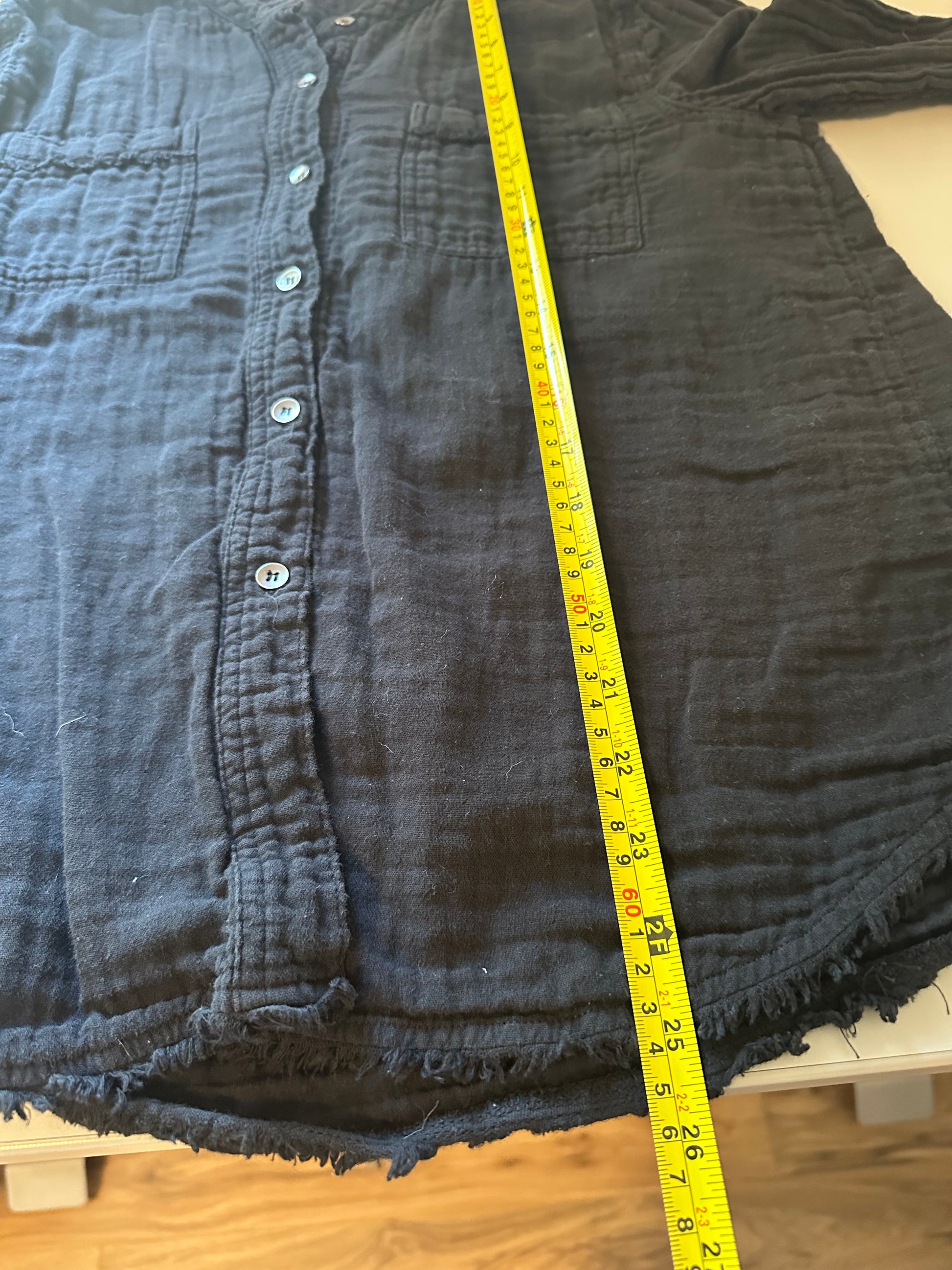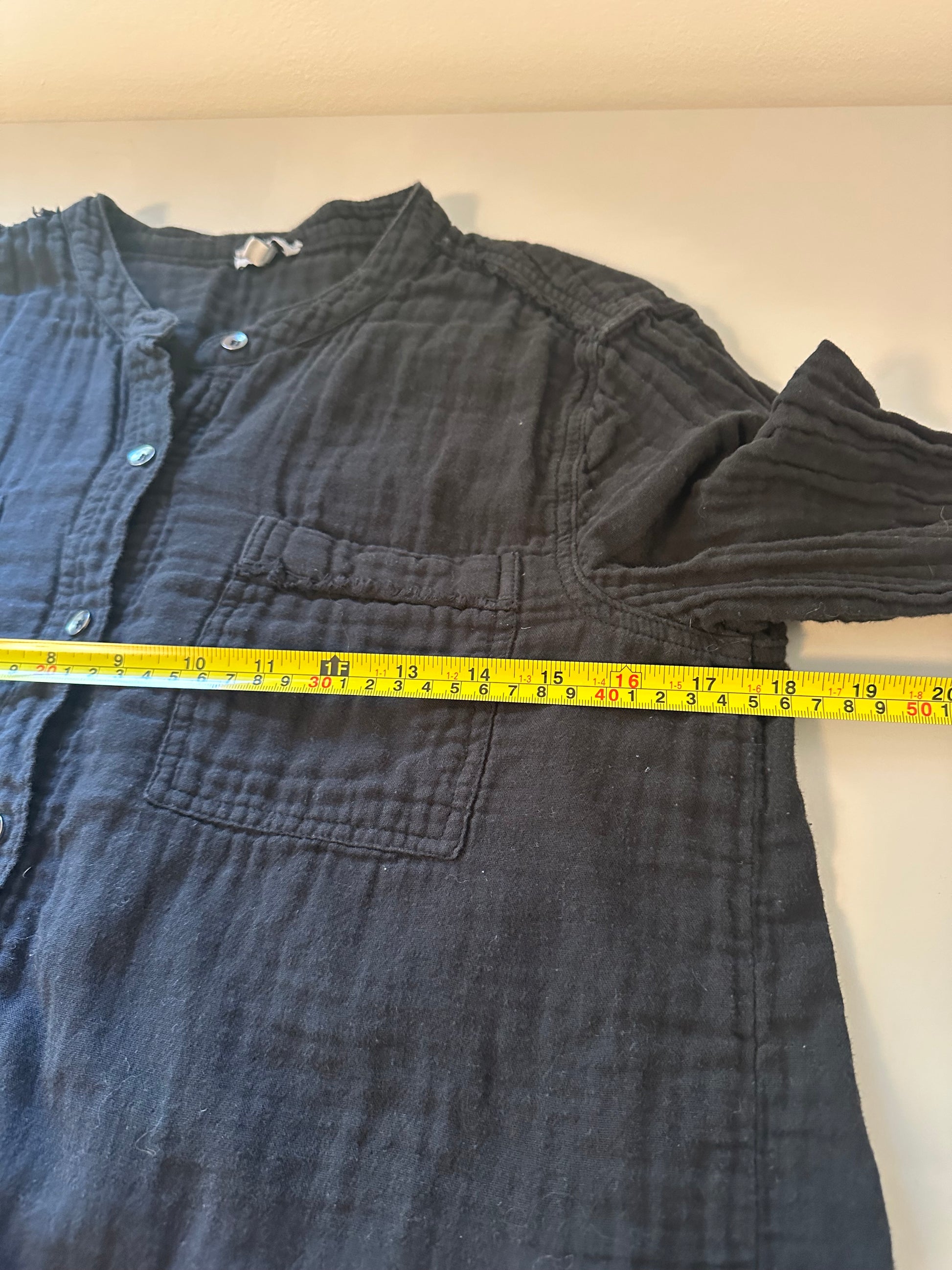 Splendid Black Cotton Gauze Collarless Button-Up Blouse | Size Medium
