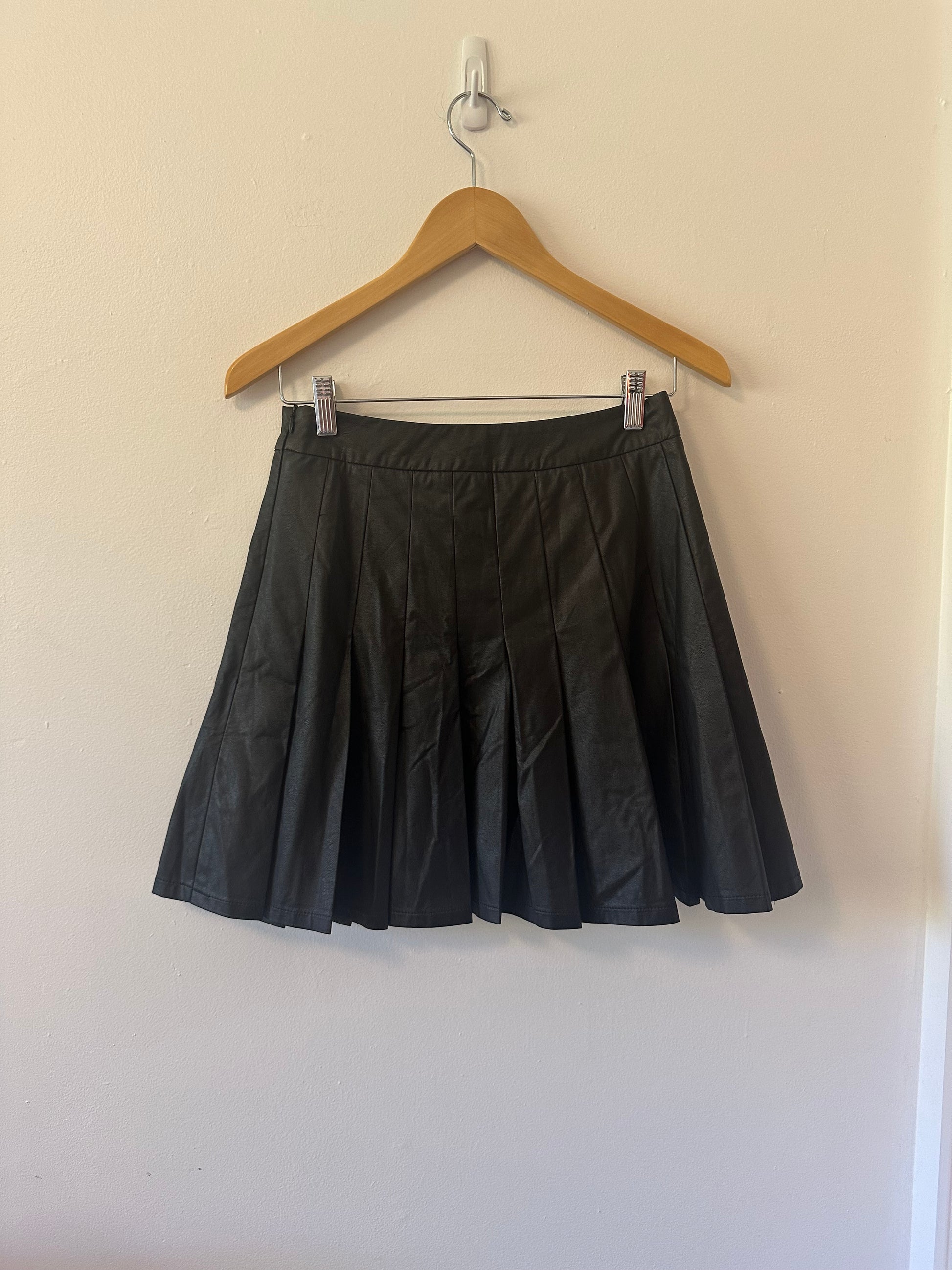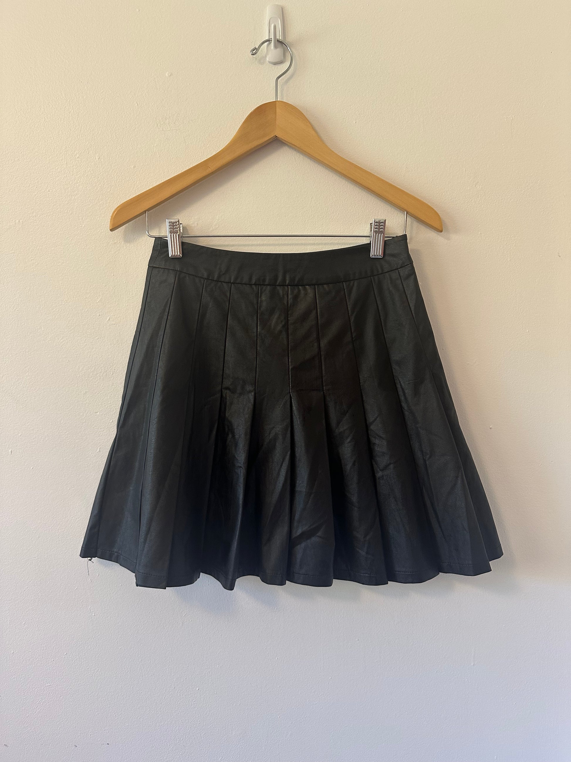 THML Black Faux Leather Pleated Mini Skater Skirt | Size Small