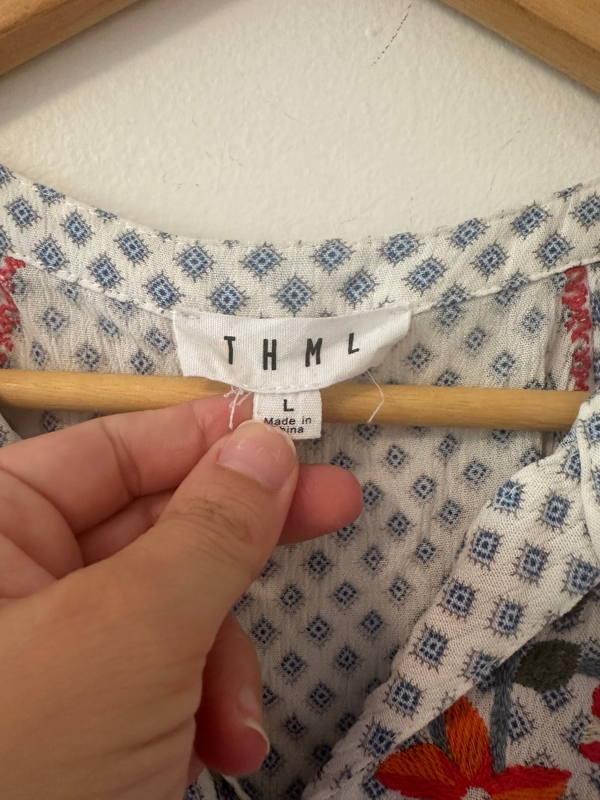 THML Embroidered Sleeveless Top in Blue and Red - Size Large