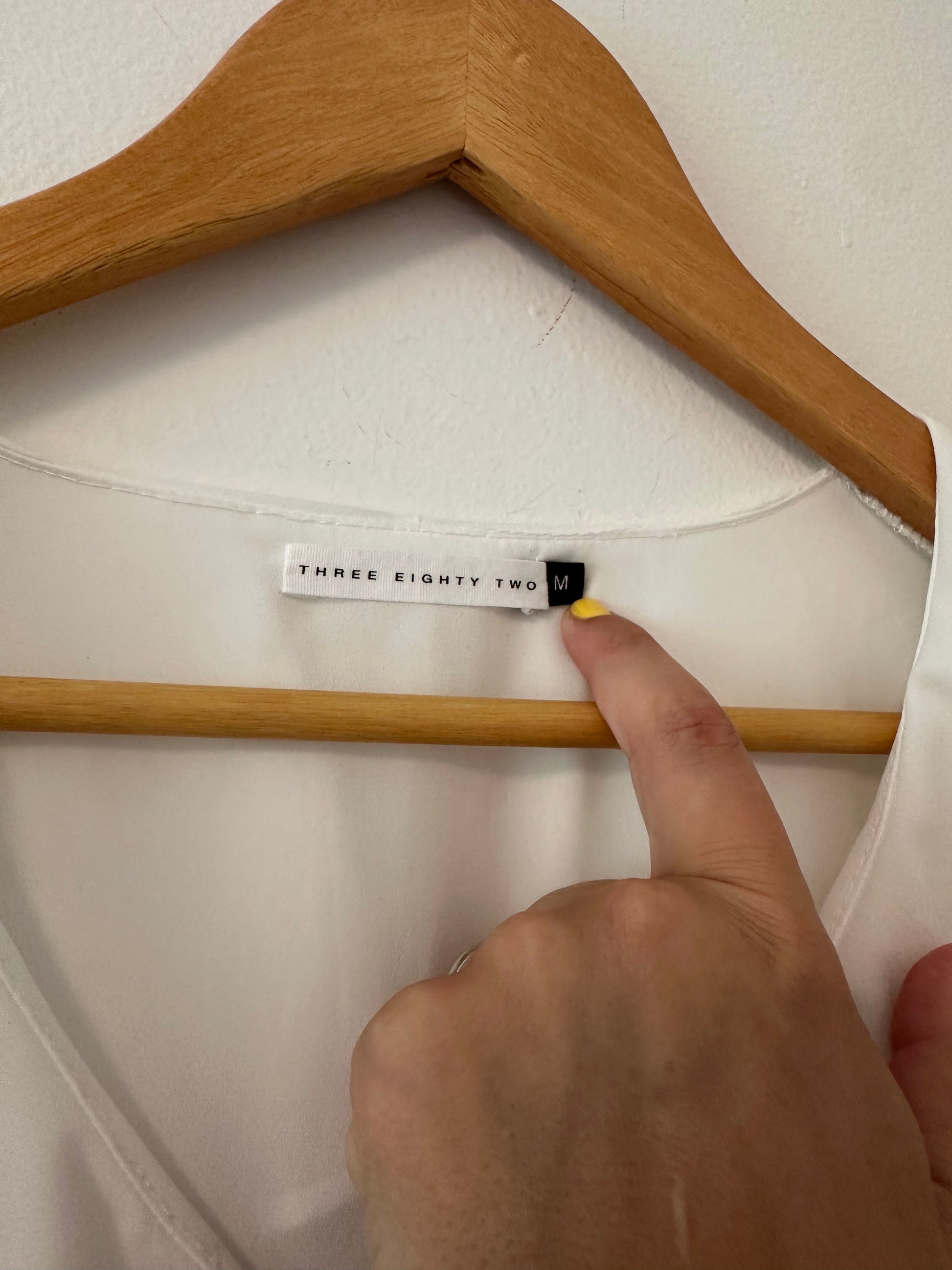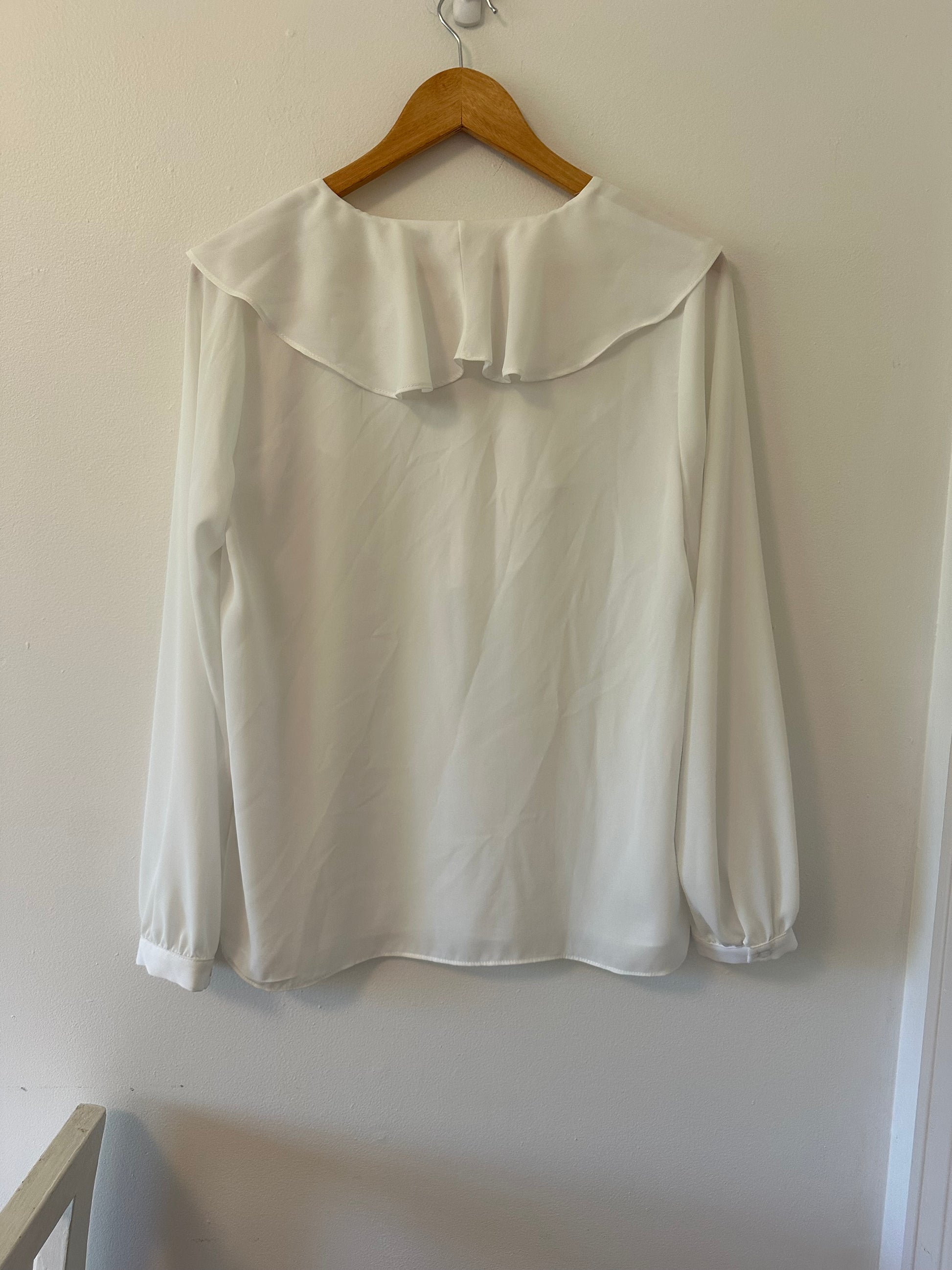 Three Eighty Two White Ruffle V-Neck Blouse Size Medium