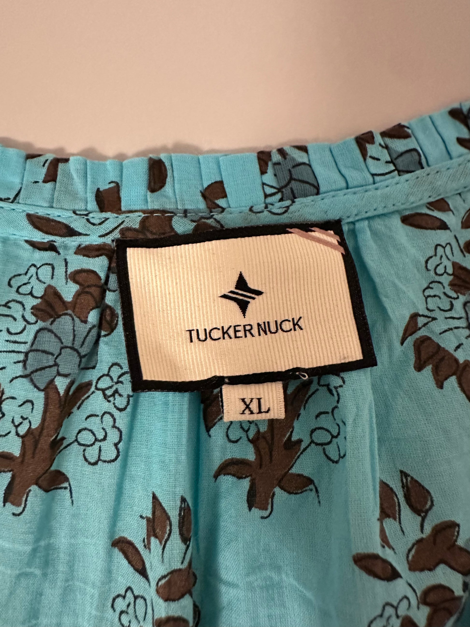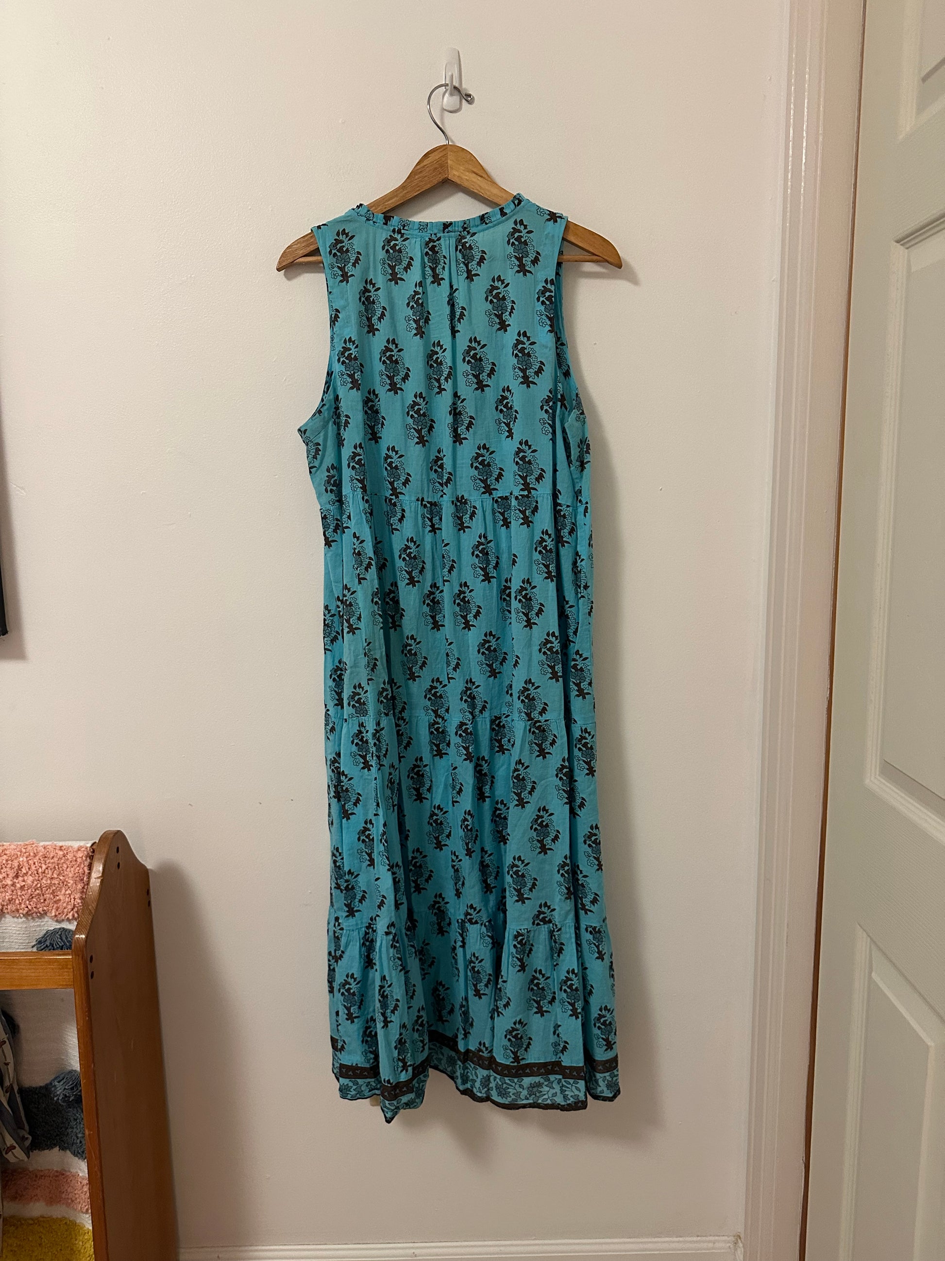 Tuckernuck Tropical Turquoise Bouquet Salty Paloma Sleeveless Caftan Dress | Size XL