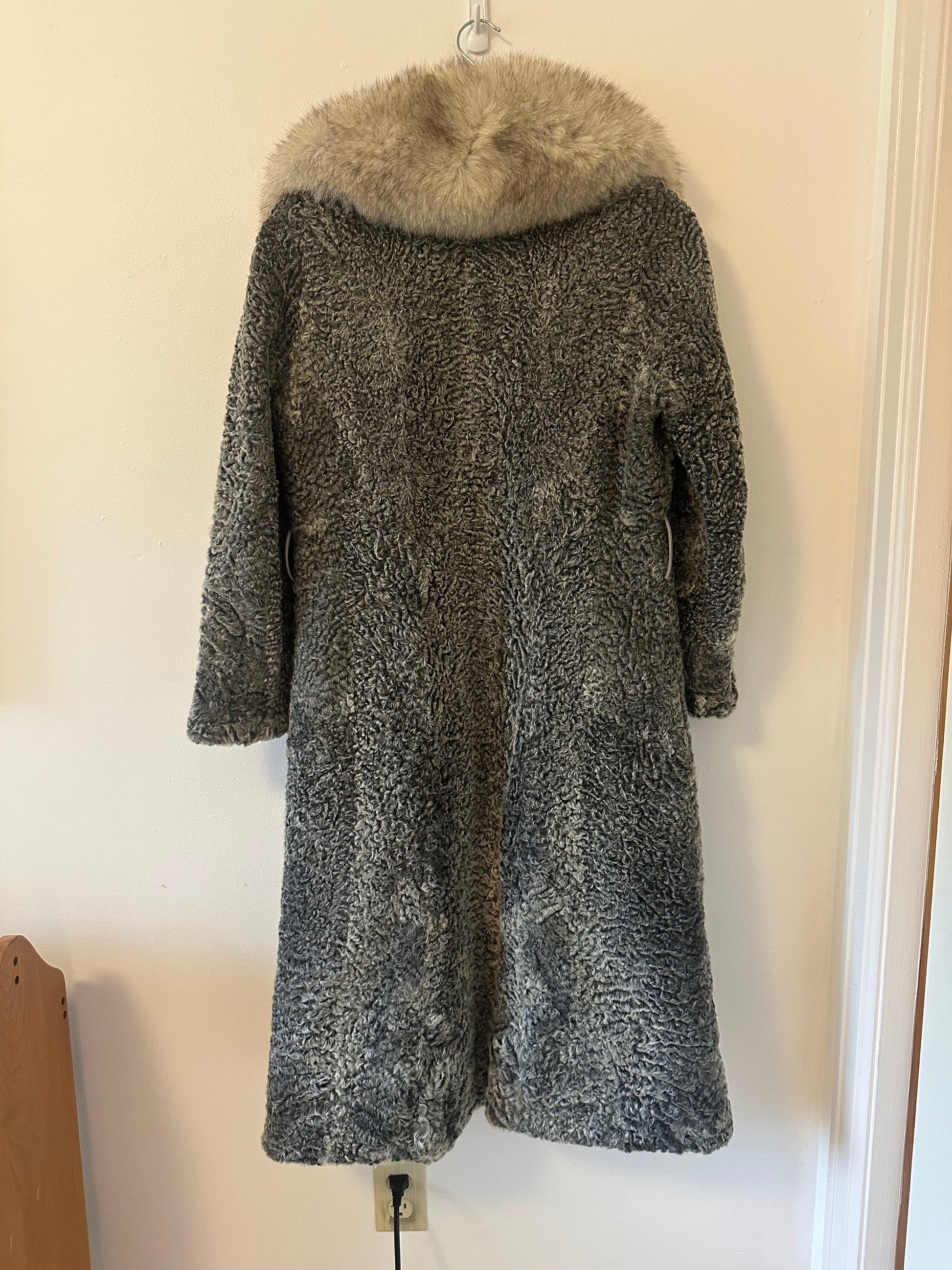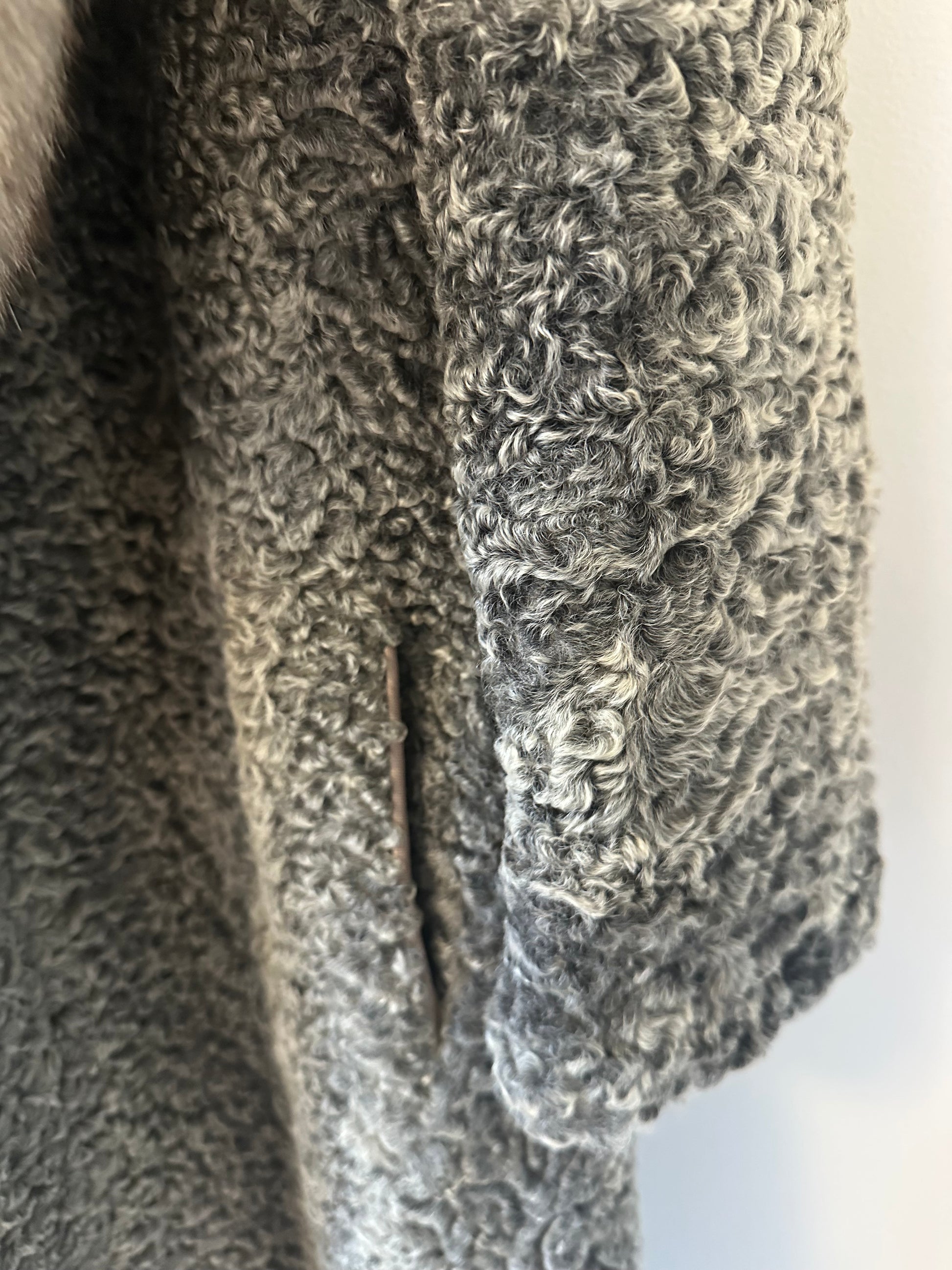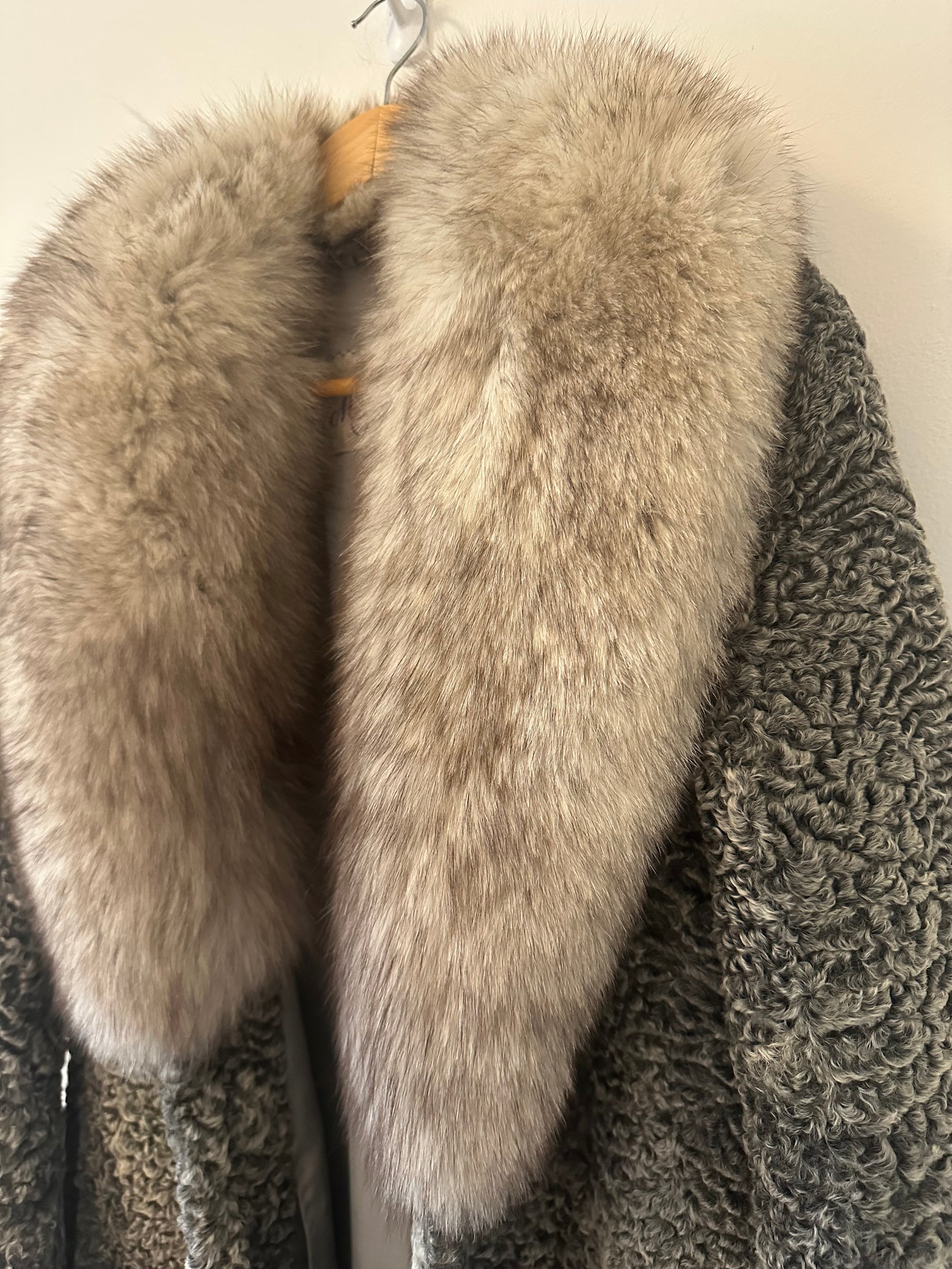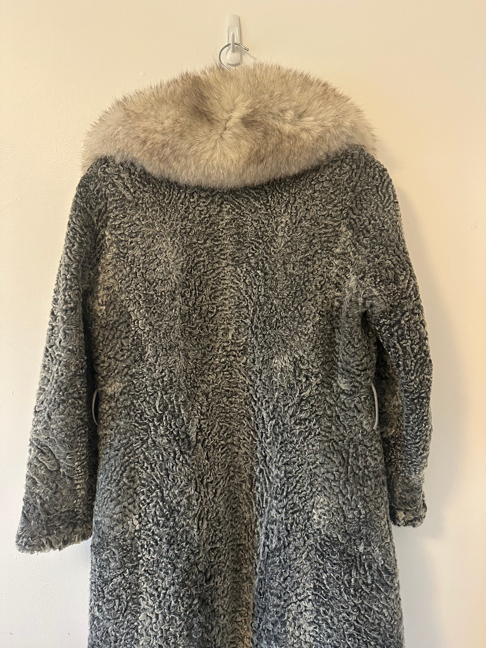 Vintage Gray Lamb and Mink Fur Women's Coat