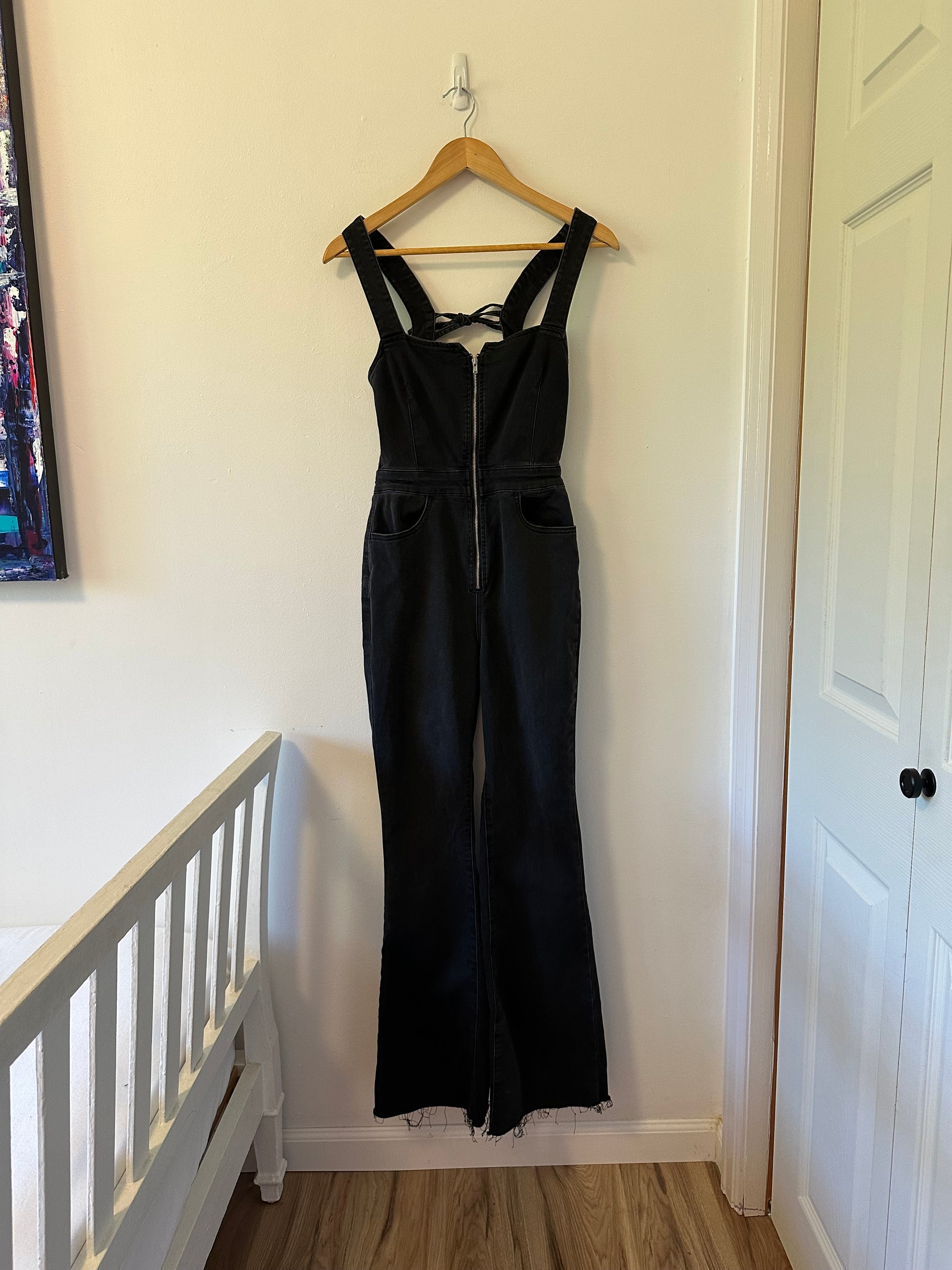 We The Free - Free People CRVY Black Open-Back Flare Leg Jumpsuit | Size 4