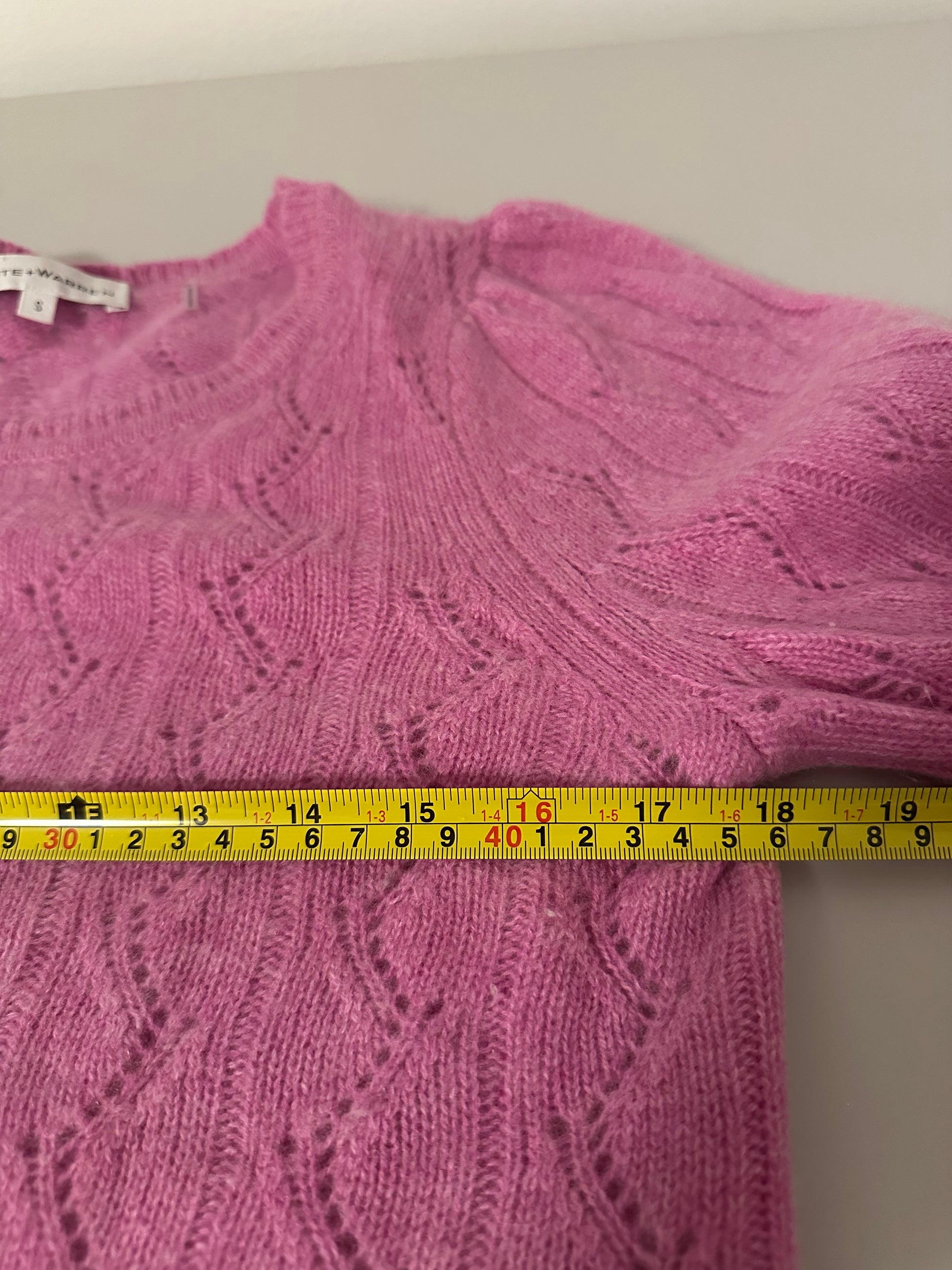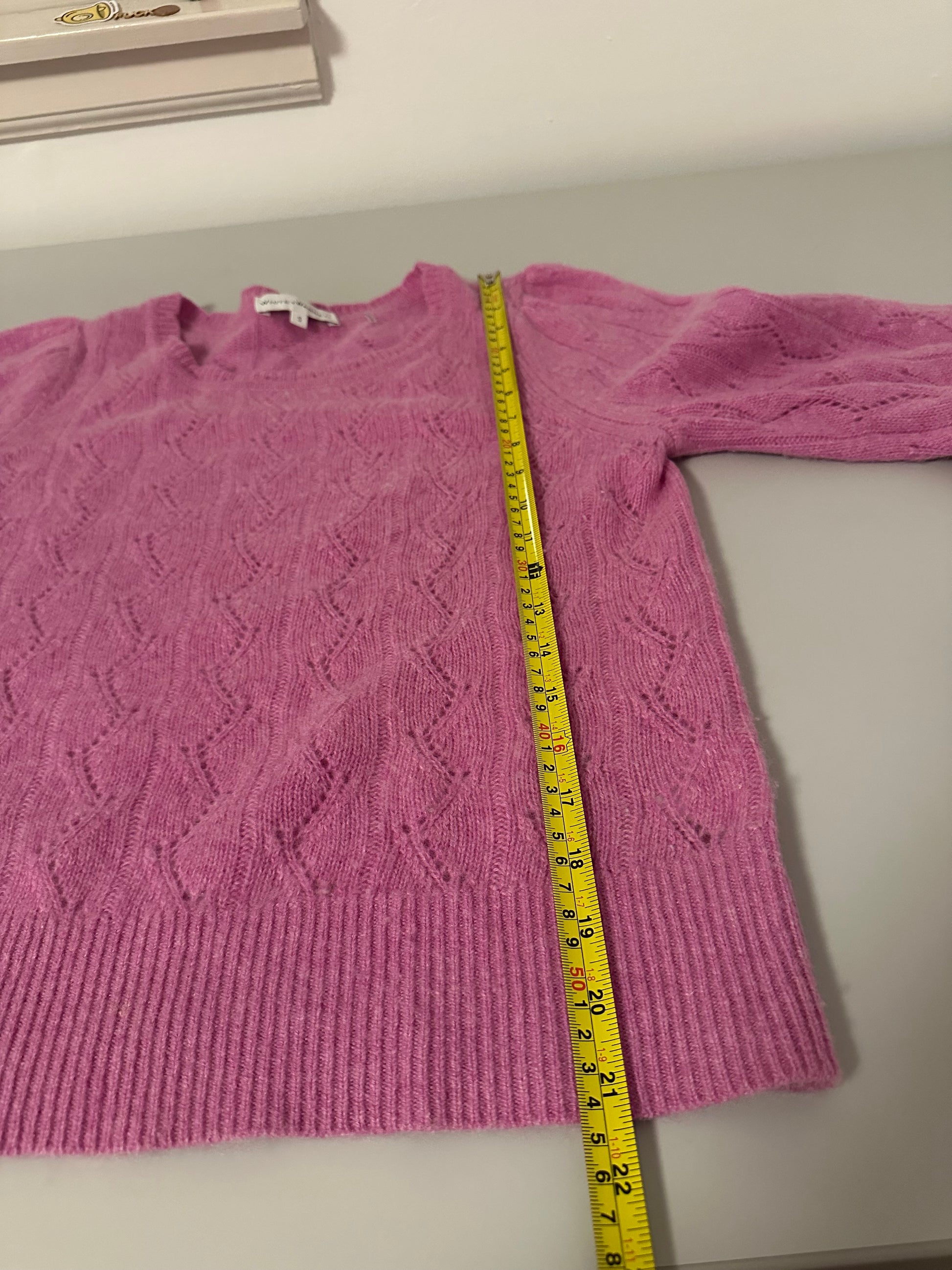 White + Warren Cashmere Pointelle Puff Sleeve Sweater in Berry Pink | Size Small