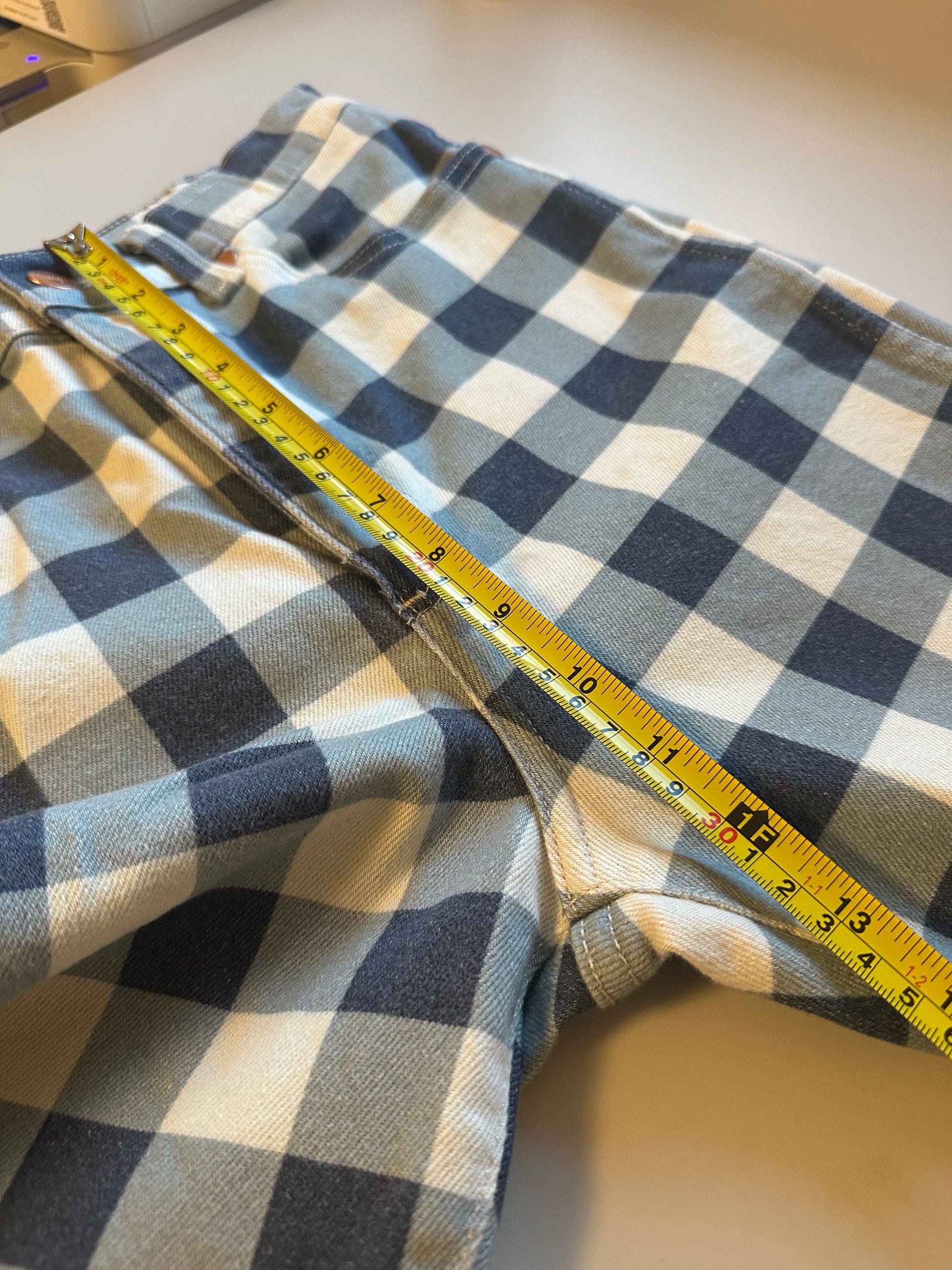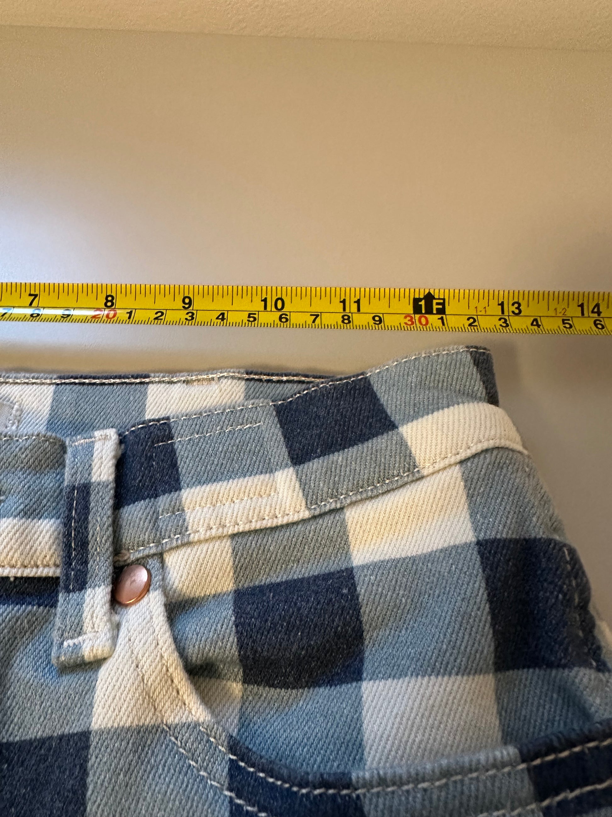 Wrangler - Wrock Gingham Kick Flare Blue and White Denim Jeans | Size 27