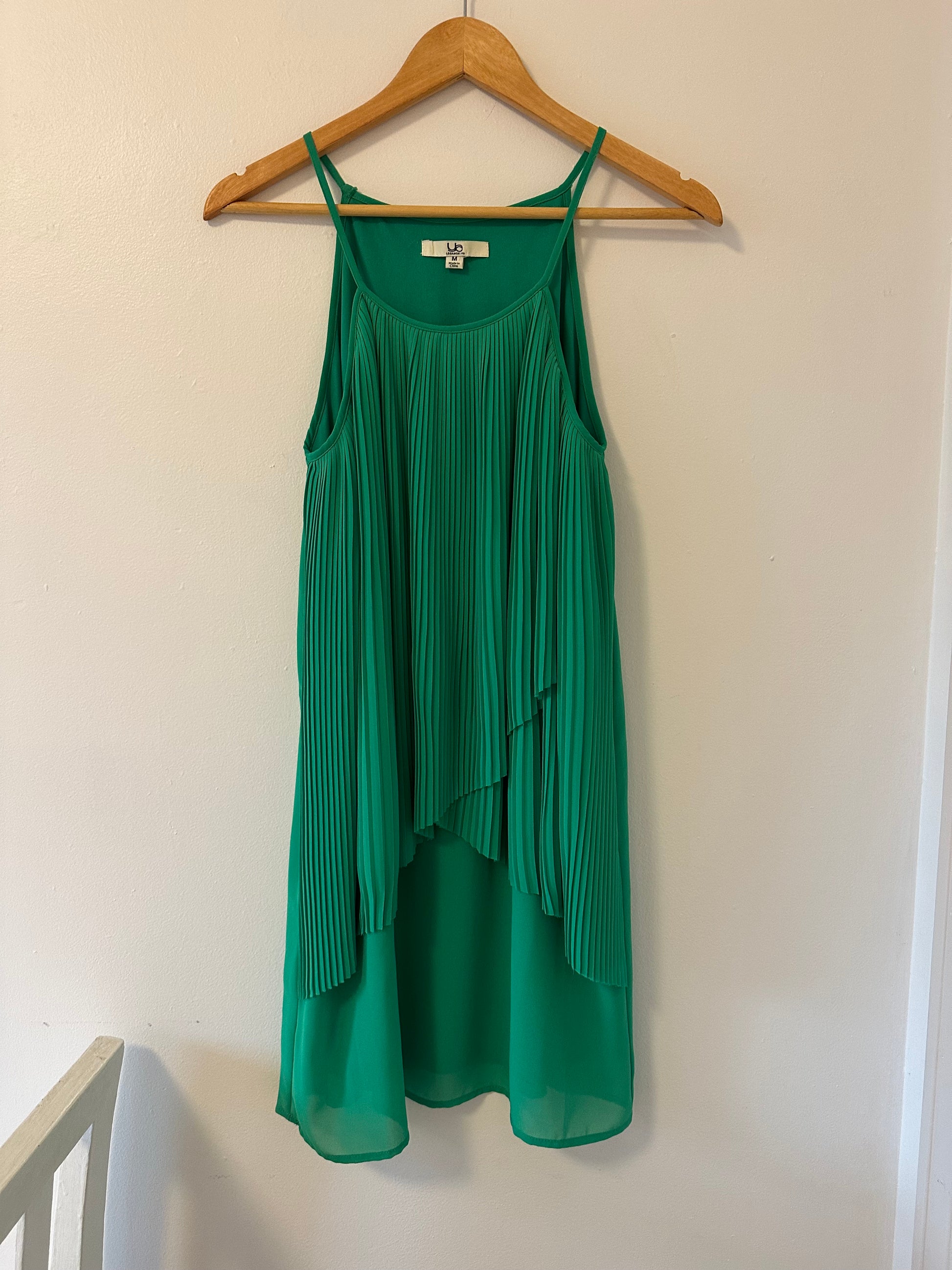 Ya Los Angeles Green Tiered Pleated Dress - Size Medium