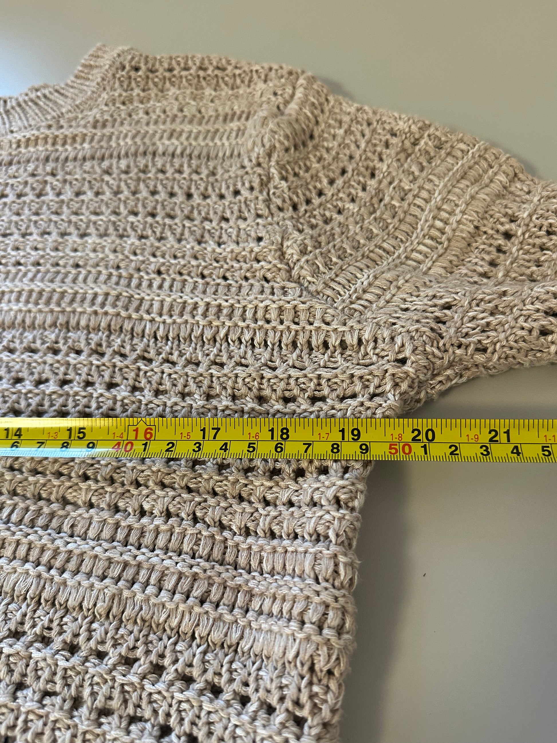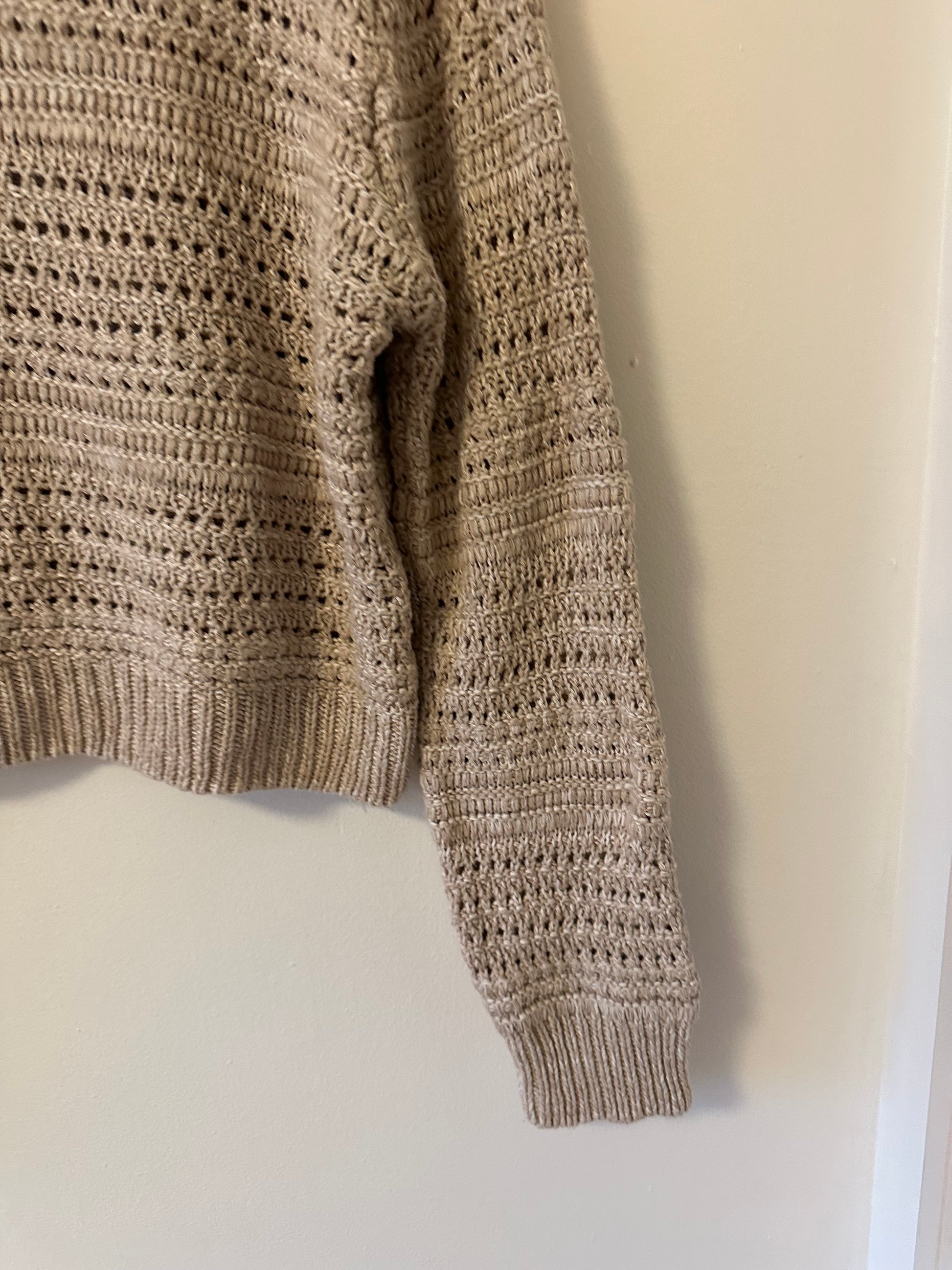 Z Supply Montalvo Crew Neck Crochet Sweater in Natural Brown | Size Large