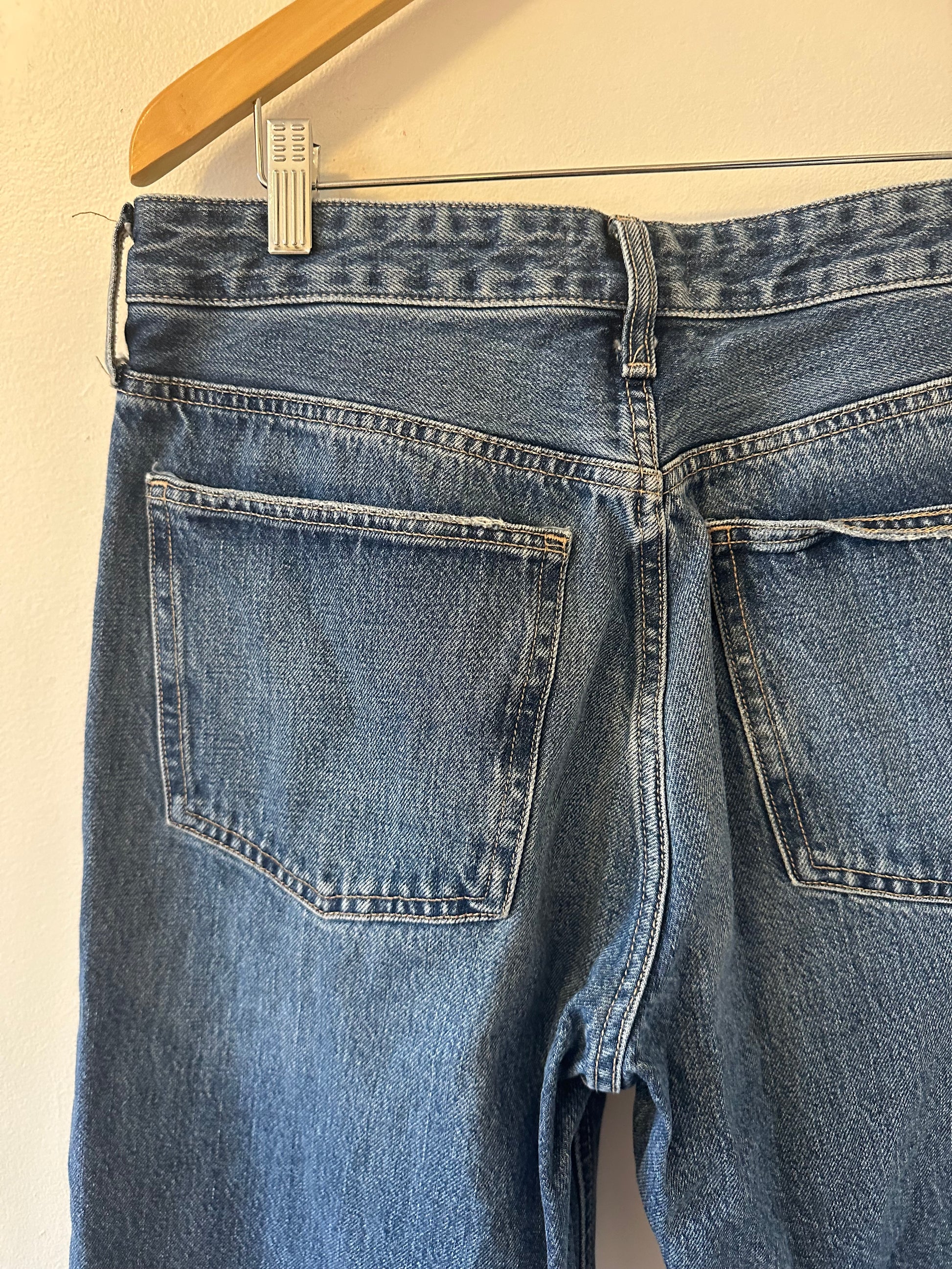 Zara Mid Rise Wide Leg Cotton Medium Wash Jeans | Size 10
